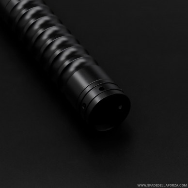 Combat laser sword made of aluminum and polycarbonate with sound and light effects.