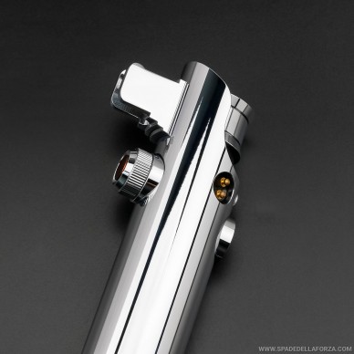 La lama è costituita da un tubo vuoto di policarbonato da combattimento che si illumina grazie ad un'unica fonte di luce posizionata all'interno dell'impugnatura.