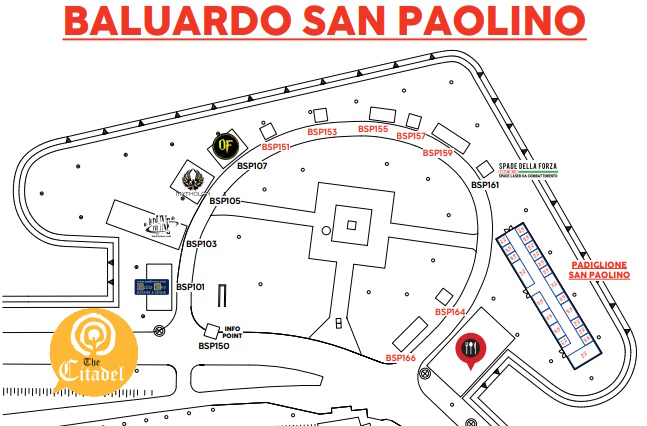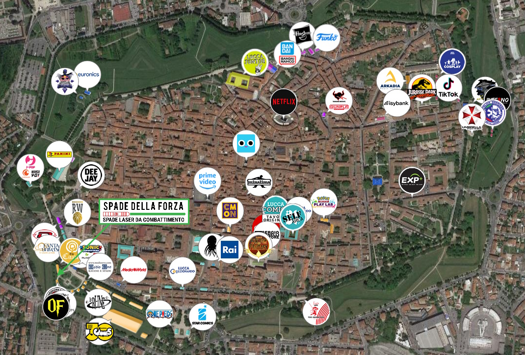 La nostra postazione di vendita di spade laser sarà nella parte Sud Ovest del centro città di Lucca, saremo posizionati sulle mura cittadine perimetrali del centro storico di lucca. Il nostro stand sarà Sul Baluardo San Paolino" uno dei tanti baluardi della città. per poterlo raggiungere durante il festival basterà seguire le indicazioni per "The Citadel" o "San Paolino"