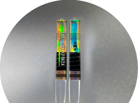 Le bacchette cinesi Spade laser sono Realizzate in plastica trasparente adatta al contatto con gli alimenti, vengono fornite a coppie di ugual colore. Grazie ad un pulsante posizionato nella parte in fondo all'elsa le bacchette si illumineranno con una luce fissa dando un effetto "spada laser" alle vostre bacchette cinesi, la luminosità del led è molto forte e ben definito. Con una seconda pressione del pulsante potrete spegnere il led.
