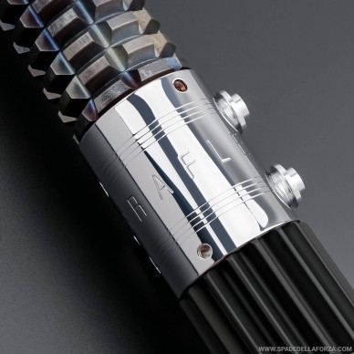 Spada laser da combattimento realizzata in Ottone e Alluminio con lama in policarbonato da combattimento.