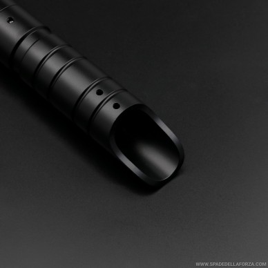 La lama è costituita da un tubo vuoto di policarbonato da combattimento che si illumina grazie ad un'unica fonte di luce posizionata all'interno dell'impugnatura.